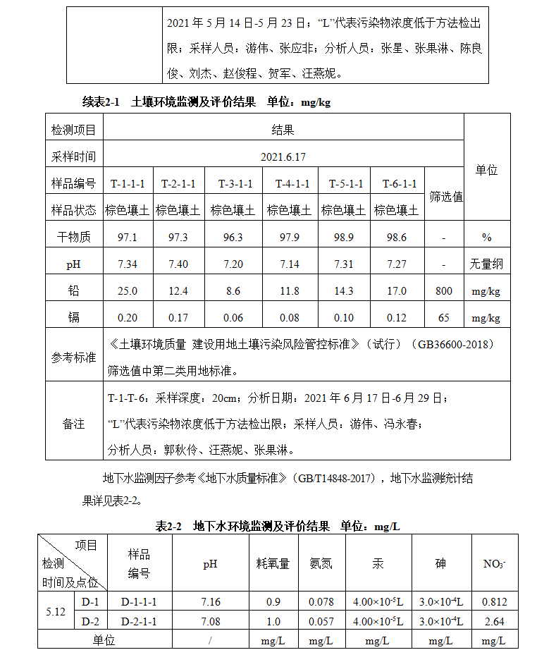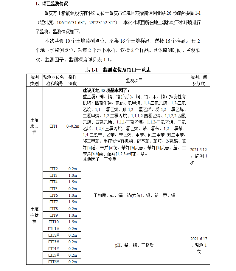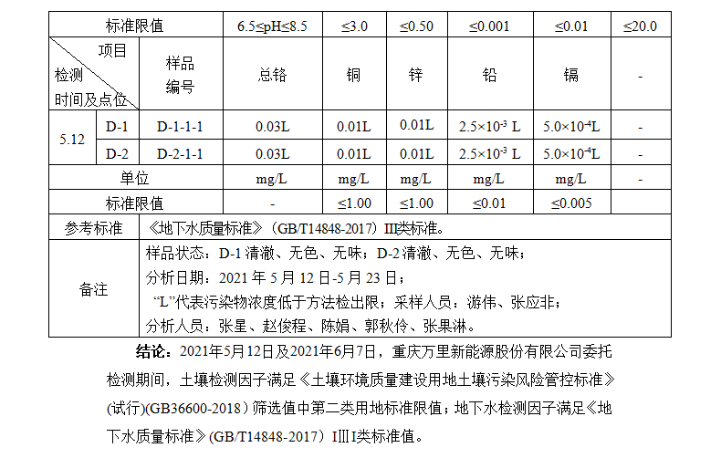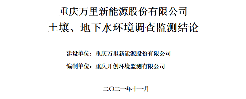 重慶萬里新能源股份有限公司2021年土壤、地下水監(jiān)測(cè)結(jié)論