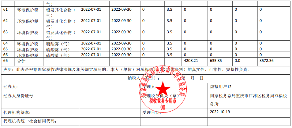 二、企業(yè)環(huán)境管理信息 1、生態(tài)環(huán)境行政許可 2007年,公司根據(jù)重慶市人民政府“退二進(jìn)三、退城進(jìn)園”的戰(zhàn)略部署,在重慶市江津區(qū)雙福工業(yè)園區(qū)征地438.5畝,投資2.6億元啟動(dòng)環(huán)保整體搬遷工程(一期年產(chǎn)100萬(wàn)只汽車啟動(dòng)電池項(xiàng)目),委托中煤科工集團(tuán)重慶設(shè)計(jì)研究院有限公司(原重慶煤設(shè)院),編制了《重慶萬(wàn)里控股(集團(tuán))股份有限公司整體搬遷項(xiàng)目環(huán)境影響報(bào)告書》,于2007年7月10日獲得了重慶市生態(tài)環(huán)境局的環(huán)評(píng)批復(fù)。2011年11月28日通過(guò)了重慶市生態(tài)環(huán)境局組織的建設(shè)項(xiàng)目竣工環(huán)境保護(hù)驗(yàn)收,獲得批復(fù)后正式投入生產(chǎn)。 公司二期工程為年產(chǎn)300萬(wàn)只(電池容量216萬(wàn)kVAh/年)汽車起動(dòng)免維護(hù)鉛蓄電池、200萬(wàn)只(電池容量125萬(wàn)kVAh/年)汽車用鉛酸弱混合動(dòng)力蓄電池、1500萬(wàn)只(電池容量216萬(wàn)kVAh/年)電動(dòng)車電池項(xiàng)目,該項(xiàng)目已通過(guò)環(huán)評(píng)審查和環(huán)保設(shè)計(jì)備案,該項(xiàng)目分階段建設(shè),分階段驗(yàn)收。第一階段工程:年產(chǎn)300萬(wàn)只(216萬(wàn)kvah)汽車啟動(dòng)型免維護(hù)鉛酸蓄電池、年產(chǎn)225只(32.4萬(wàn)kvah)電動(dòng)車電池(年產(chǎn)1500萬(wàn)只電動(dòng)車電池分段實(shí)施)。該項(xiàng)目委托有資質(zhì)的單位:重慶國(guó)環(huán)環(huán)境監(jiān)測(cè)有限公司,編制了《重慶萬(wàn)里控股(集團(tuán))股份有限公司整體搬遷項(xiàng)目(第一階段)竣工環(huán)境保護(hù)驗(yàn)收監(jiān)測(cè)報(bào)告》,并于2018年9月29日通過(guò)了重慶市生態(tài)環(huán)境局組織的建設(shè)項(xiàng)目竣工環(huán)境保護(hù)驗(yàn)收,獲得批復(fù)后正式投入生產(chǎn)。 公司在環(huán)保整體搬遷過(guò)程中認(rèn)真執(zhí)行國(guó)家有關(guān)建設(shè)項(xiàng)目環(huán)保審批的要求,工程立項(xiàng)、環(huán)評(píng)、初步設(shè)計(jì)和“三同時(shí)”手續(xù)齊全。公司新建項(xiàng)目執(zhí)行了環(huán)評(píng)和“三同時(shí)”制度,落實(shí)了環(huán)評(píng)報(bào)告所提出的措施,保證了廢水、廢氣、噪聲的達(dá)標(biāo)排放和固體廢物安全處置,無(wú)污染物超標(biāo)或超總量排放的現(xiàn)象。 2、環(huán)境保護(hù)稅