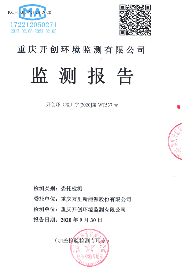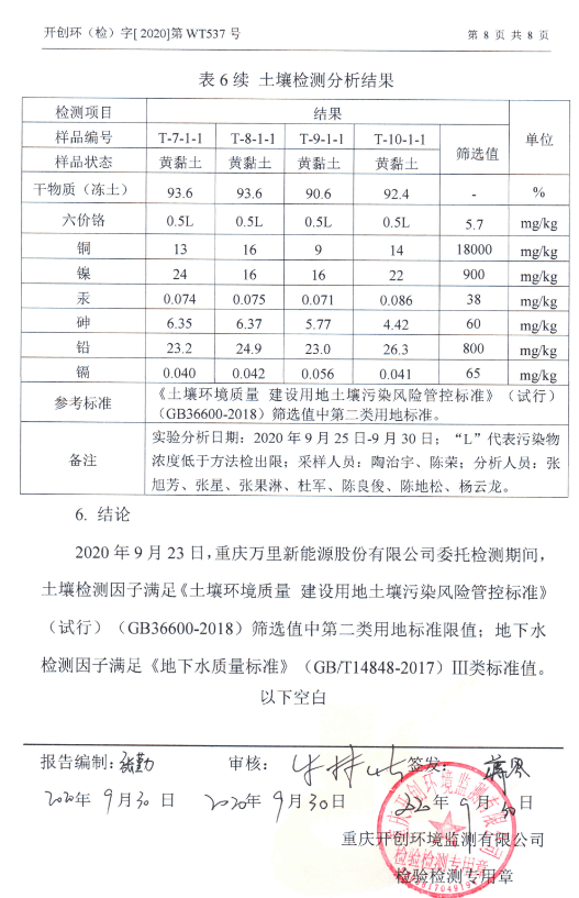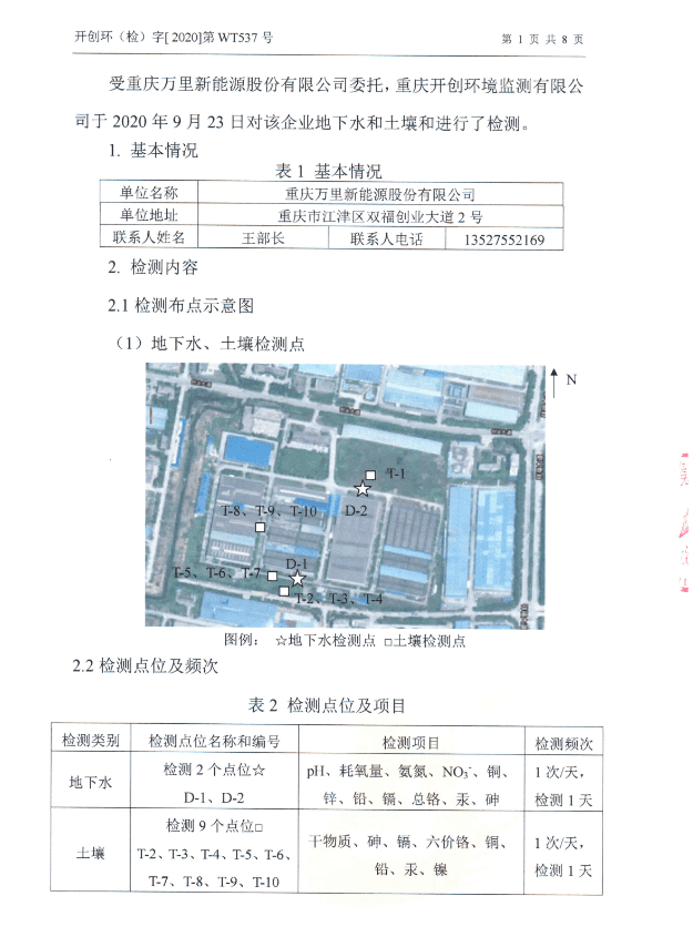 重慶萬里新能源股份有限公司2020年地下水和土壤監(jiān)測報(bào)告